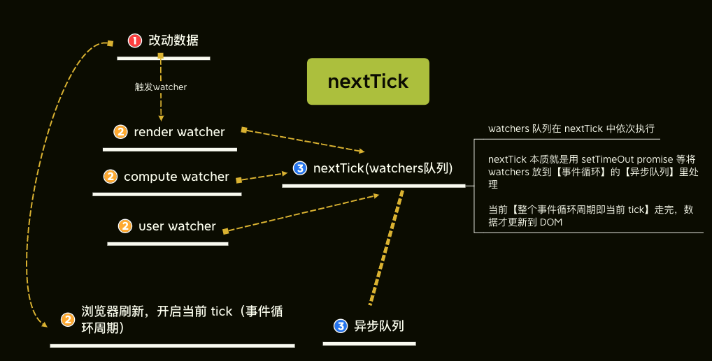 patch 是一个异步过程, VNode -> nextTick -> DOM
